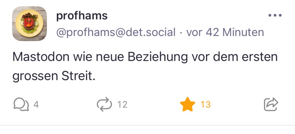Interessant fand ich die Aussage einer Userin auf Mastodon, es sei für viele auch frustrierend, sich wieder in ein neues Netzwerk einarbeiten zu müssen. Ich denke, es gehört zu unserer Zeit und Kommunikation dazu, dass wir uns regelmäßig immer wieder auf neue Kommunikationskanäle einstellen werden müssen – und im Sinne einer Diversifizierung am besten gleich auf mehreren vertreten sind. In diesem Fall ist es sogar noch relativ einfach: Wer Twitter kennt, kommt auch auf Mastodon schnell klar, und es gibt unzählige Anleitungen, die die ersten Schritte abbilden, zum Beispiel diese Materialsammlung von Ralf Stockmann.
