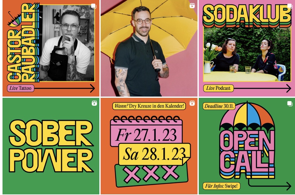 Nice Dry! ist eine Initiative für Trockenheit und Suchtprävention, die an eine Welt glaubt, in der Nüchternheit und Klarheit für viele Menschen relevant ist. Deshalb arbeitet ND! an kreativen Maßnahmen, die das Image von Nüchternheit positiv belegen und die Stigmatisierung von Suchterkrankungen abbauen. Im Rahmen des „Dry January“ fand das Event in Hamburg statt. Die lebensbejahende CI und Kommunikation machten das Kunst- & Kulturevent niederschwellig und für eine breite Zielgruppe attraktiv.